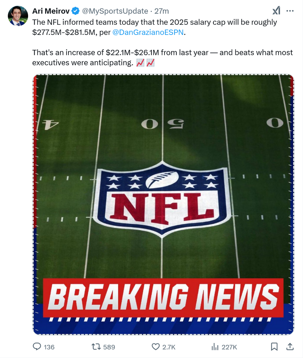 February 21Feb 21 On 2/19/2025 at 10:52 AM, UK_EaglesFan89 said: That’s very good news! Might make things a little easier for the FO to bring guys back and bring others in. Conversely, more teams will get in on the free agent bidding wars and the market value for all positions is getting a bigger reset. In a way, it's all relative for new contracts, but when something like this happens it makes all the contracts currently on the books better values than they may have seemed initially.