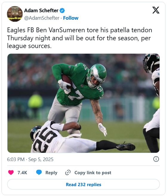 September 6Sep 6 Author 1 hour ago, seengreen said:What is the Van Sumeren injury?Town patellar tendon. Same injury he had last year.