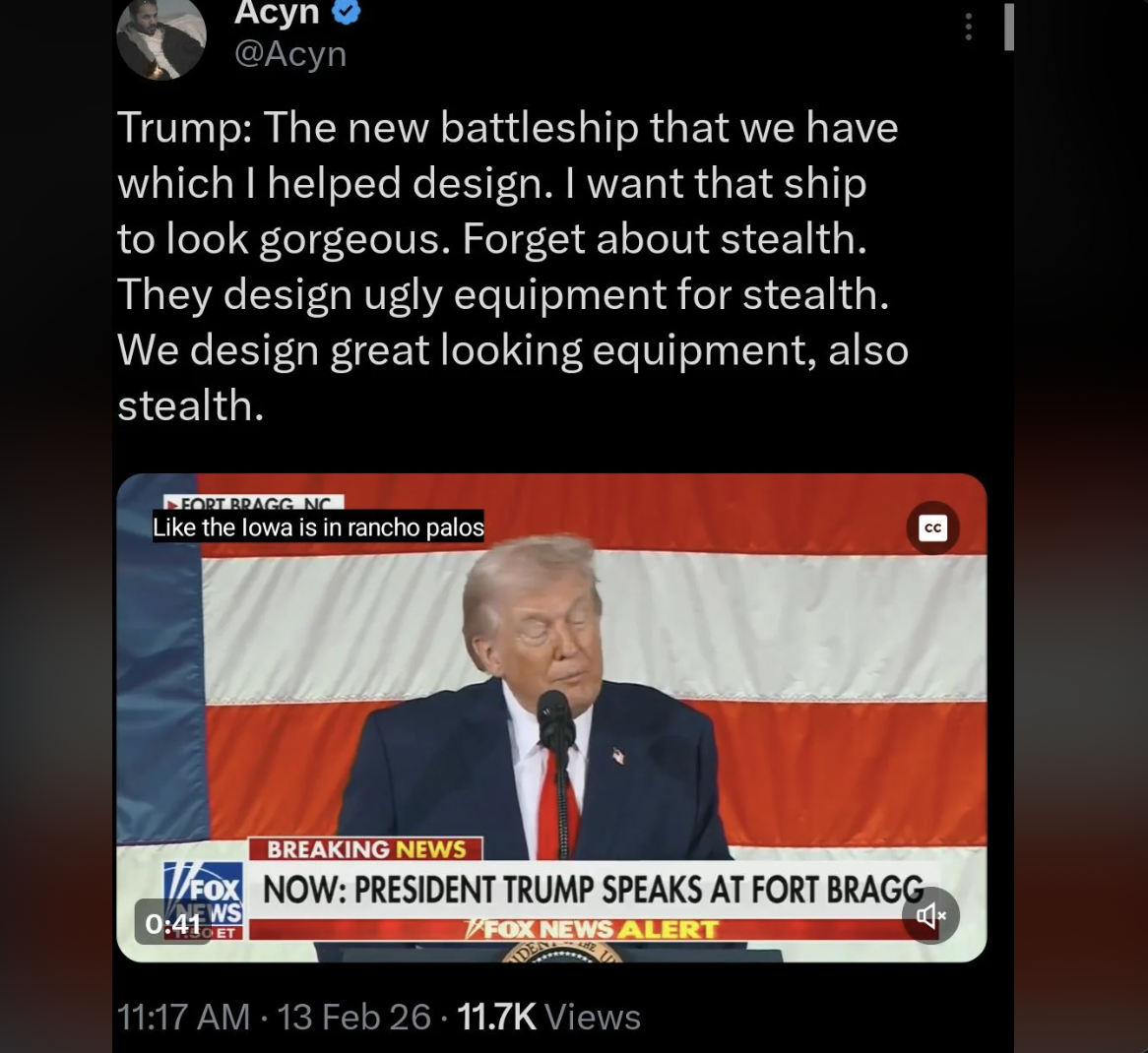 February 13Feb 13 3 hours ago, justwinbaby said:yet another no answer cool coolAnything to DISTRACT from America building beautiful new battleships! Not just great but great LOOKING design by yours truly!