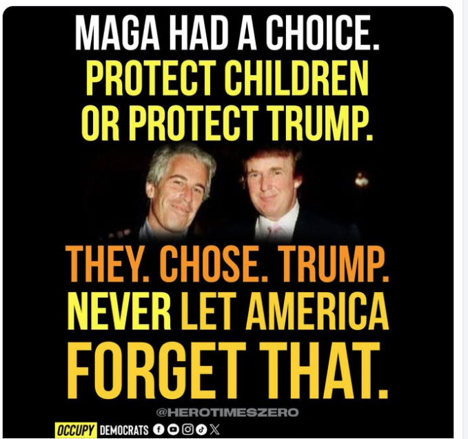 July 24, 2025Jul 24 10 minutes ago, Diehardfan said:Last week confused libs woke up like I thought we were the party of mutilation and grooming? This week they have been converted to child advocates.Trump is winning!!!Uploading Attachment...Your adulation for a guy trying to cover this up is concerning. There is something not right with you.
