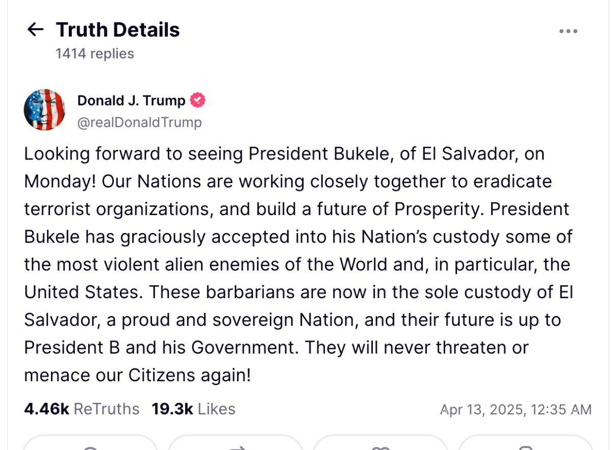 April 13Apr 13 Author Trump taking a shot at SCOTUS. SCOTUS has ruled that all of those "barbarians" have a right to habeas.