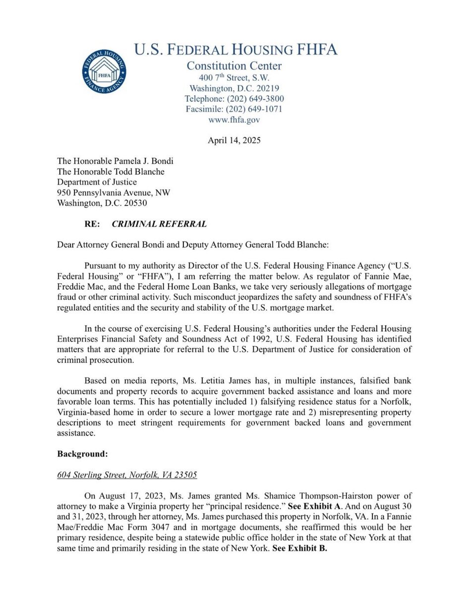 April 16Apr 16 Author According to Grok, the venue for the letitia james mortgage fraud case:Allegations of mortgage fraud have been raised, primarily by media outlets and the Trump administration, leading to a criminal referral by the Federal Housing Finance Agency (FHFA) to the U.S. Department of Justice (DOJ) for investigation. Since no formal charges or case have been filed, I can provide a speculative analysis of the potential venue for such a case based on the allegations and standard legal principles for federal mortgage fraud cases.Allegations OverviewThe allegations, as reported, center on two main claims:Virginia Property (2023): James allegedly misrepresented a Norfolk, Virginia, property as her principal residence in mortgage documents to secure a $219,780 loan, despite being a New York prosecutor and not relocating to Virginia. This could potentially violate federal fraud statutes (e.g., 18 U.S.C. § 1014 for false statements on loan applications) if the declaration was knowingly false to obtain better loan terms.Brooklyn Property (2001–2011): James is accused of misrepresenting her Brooklyn apartment building as a four-unit property on mortgage applications, including a 2011 Home Affordable Modification Program (HAMP) loan, when official records show it has five units. This could also constitute mortgage fraud if the misrepresentation was intentional to secure favorable terms.Additionally, there are claims about a 1983 and 2000 property transaction where James and her father were listed as "husband and wife” on mortgage documents, though these are less central to the fraud allegations and may be clerical errors or misinterpretations.Potential Venue for a Federal Mortgage Fraud CaseIf the DOJ pursues a federal mortgage fraud case based on these allegations, the venue would be determined by federal law and the specifics of the alleged crimes. Federal mortgage fraud is typically prosecuted in U.S. District Courts, and venue is governed by Article III of the U.S. Constitution, the Sixth Amendment, and Federal Rule of Criminal Procedure 18, which require the trial to occur in the district where the crime was committed. Key considerations include:Location of the Alleged Fraudulent Acts:Virginia Property: The Norfolk, Virginia, property transaction occurred in August 2023, with mortgage documents signed for a property in Norfolk. If the alleged fraud involves false statements on the mortgage application submitted to a lender, the venue would likely be the Eastern District of Virginia (Norfolk Division), as this is where the property is located and where the loan documents were likely processed or submitted.Brooklyn Property: The alleged misrepresentations about the Brooklyn property’s unit count occurred in New York, primarily tied to a 2011 HAMP loan application. This would likely place the venue in the Eastern District of New York (Brooklyn), where the property is located and where the mortgage applications were presumably submitted.Interstate Elements: If the fraud involved interstate wire communications (e.g., submitting false documents to a lender across state lines), venue could potentially be in either district where the fraudulent act had an effect. For example, if the lender was based in a different state, venue might also be appropriate in that district. However, the primary venues would still be Virginia or New York based on the property locations.Conspiracy or Multiple Acts:If prosecutors frame the case as a conspiracy (e.g., under 18 U.S.C. § 371) involving multiple fraudulent transactions across Virginia and New York, venue could be in any district where an overt act in furtherance of the conspiracy occurred. This could allow the case to be filed in either the Eastern District of Virginia or the Eastern District of New York, depending on prosecutorial strategy.Federal Jurisdiction and HAMP Loan:The HAMP loan allegations (Brooklyn property) involve a federal program administered by the U.S. Department of the Treasury, which strengthens federal jurisdiction. Since the alleged misrepresentations were made in New York for a property in Brooklyn, the Eastern District of New York would be the most likely venue for this component.The Virginia property allegations involve a mortgage that may be backed by federal entities (e.g., Fannie Mae), further supporting federal jurisdiction in the Eastern District of Virginia.Practical Prosecutorial Considerations:DOJ’s Discretion: The DOJ, upon reviewing the FHFA referral, would decide where to file charges (if any). Prosecutors often choose the district with the strongest connection to the crime or where evidence and witnesses are most accessible. Given James’s prominence in New York, the Eastern District of New York might be preferred for the Brooklyn allegations to avoid perceptions of bias in a less familiar jurisdiction like Virginia.Political Sensitivity: As James is a high-profile figure who prosecuted Donald Trump, the DOJ might opt for a venue perceived as neutral. The Eastern District of Virginia is known for its "rocket docket” (fast case processing) and could be chosen to expedite the case, though the Eastern District of New York is more directly tied to James’s actions as a New York official.Residency and New York Law:The Virginia allegations also raise questions about James’s residency status under New York law, which requires elected officials to maintain New York residency. If she declared Virginia as her principal residence, this could trigger a state-level inquiry into her eligibility to hold office, but this would be separate from a federal mortgage fraud case and handled in New York state courts, not federal courts.Likely VenuesBased on the allegations:Eastern District of New York (Brooklyn): Most likely for the Brooklyn property allegations, especially the 2011 HAMP loan, as the property is located there, and the alleged misrepresentations were made in New York. This district is also where James s