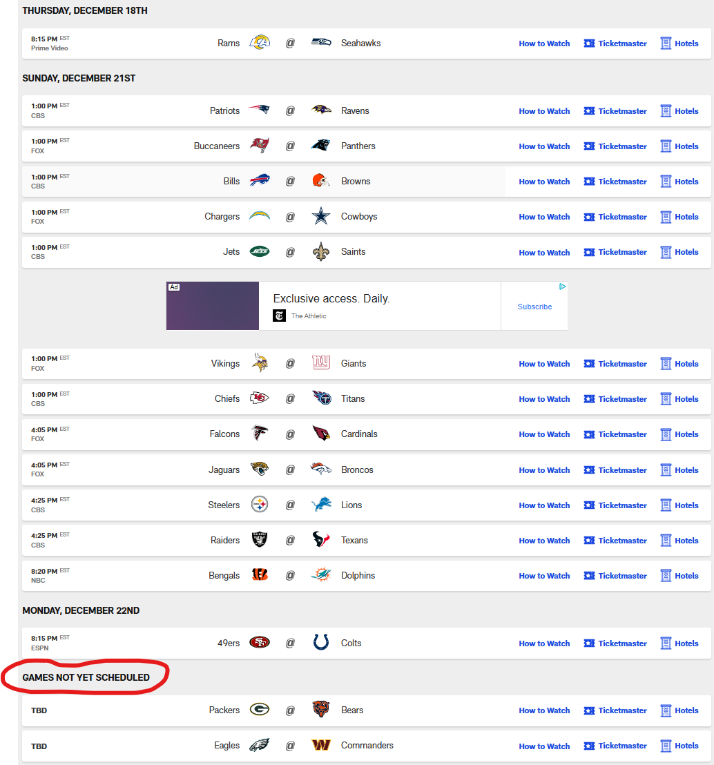 May 16May 16 Author Well this is somewhat strange ... from the official NFL site, check out the week 16 schedule: