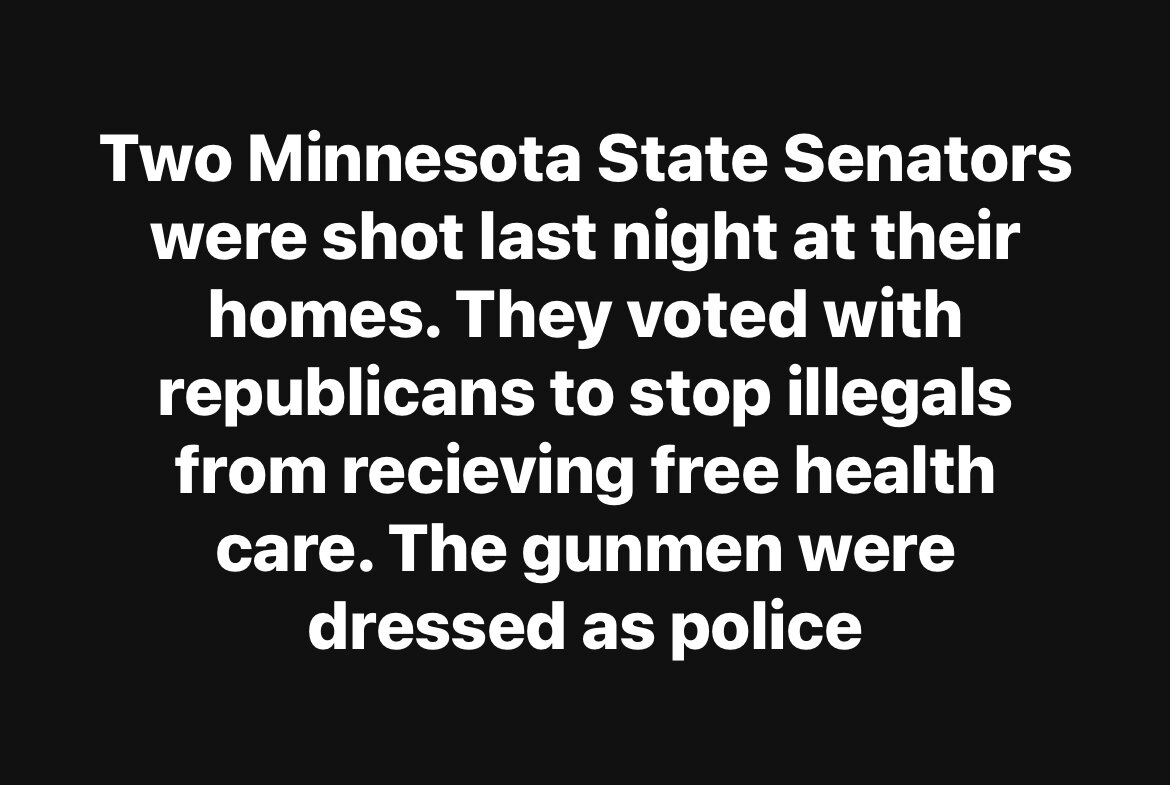 June 14Jun 14 49 minutes ago, Gannan said:Imagine posting this after some loon from your party assassinates a democratic law maker and her spouse. Please seek professional help.Well, the latest alleged info is that the suspect was a person appointed to the Workforce Development Board in 2019 by then Governor Walz.