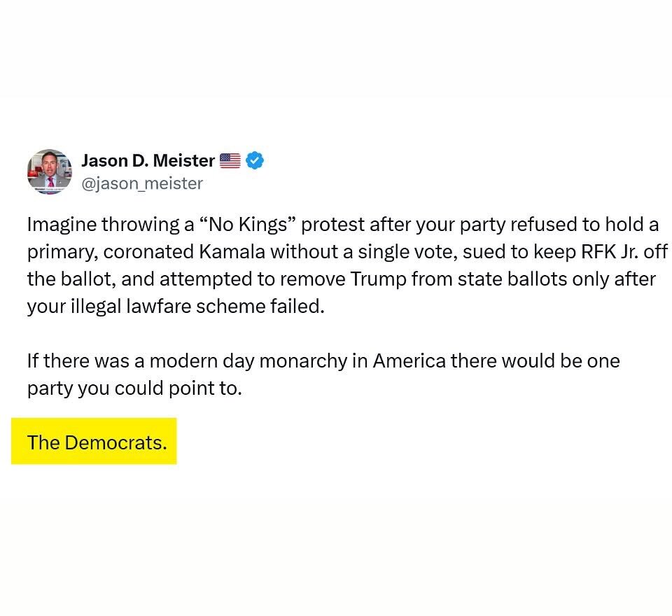 June 14Jun 14 6 minutes ago, It Hurts said:Also, Trump was asked and he said he doesn’t feel like a king.