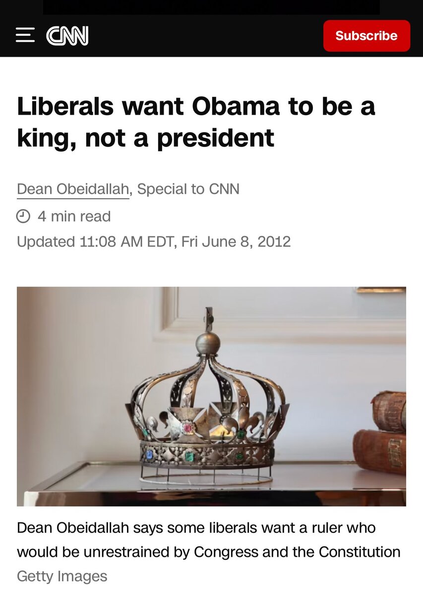 October 19, 2025Oct 19 27 minutes ago, Gannan said:But Obama! 🤣Hey some comedian 13 years ago speculated in a CNN editorial that some libs want Obama to be a king.Totes the same as the executive branch power grab from this administration.