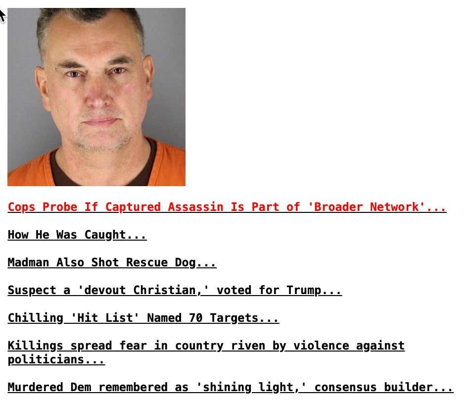 June 16Jun 16 Time to call this for what it is... Radicalized Ultra Maga Domestic TerrorismMN Suspect Vance Boelter’s Chilling ‘Hit List’ Named 70 ‘Targets’ – Including Amy Klobuchar, Ilhan Omar, Abortion Providers