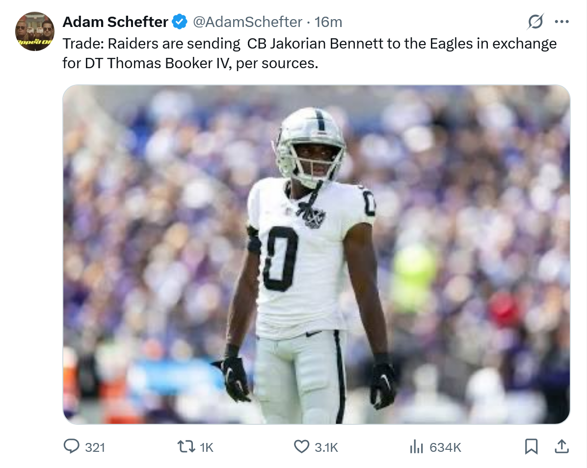 August 5Aug 5 Author This from Raiders Wire before the trade was reported. Apparently the guy can play and will provide decent depth.https://raiderswire.usatoday.com/story/sports/nfl/raiders/2025/07/31/raiders-training-camp-should-they-trade-cb-jakorian-bennett/85455388007/Should the Raiders trade CB Jakorian Bennett?Justin MeloRaiders Wire
