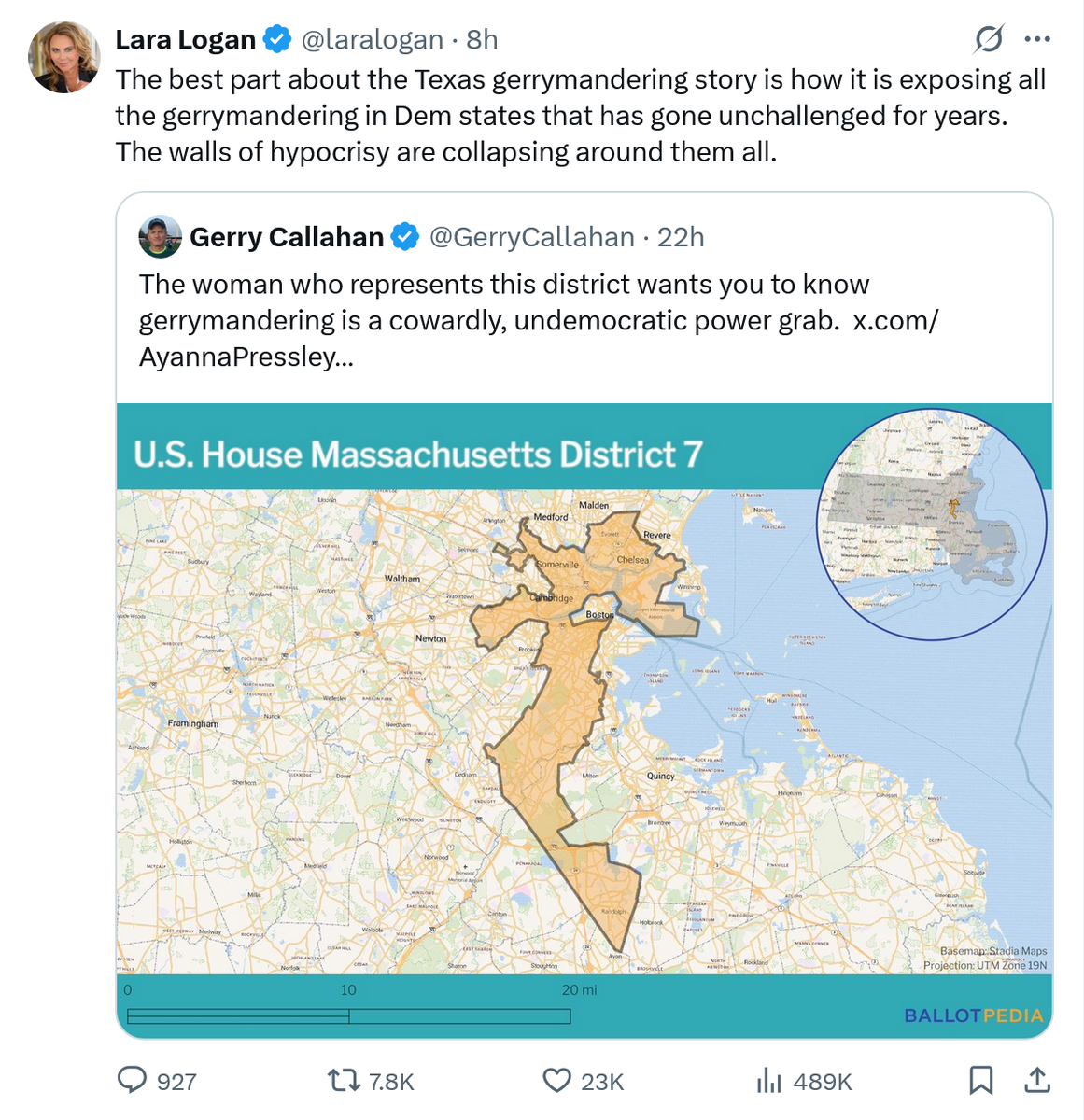 August 7, 2025Aug 7 3 hours ago, Procus said:I see the hypocritical leftists here are crying because the Republicans are late in the game in gerrymandering. Rules for thee but not for me, right? The real reason why you pathetic leftist losers are crying so hard is because without gerrymandering in Democratic states, your party is sunk and you know it. Republicans finally woke up and correctly decided that what's good for the goose is good for the gander. Truth is that most blue states are so heavily gerrymandered already, that there's little room for any additional D seats to be created. Cry harder.What a dumb tweet that is... For comparison:Red states with ZERO Democrat House Seats:AlaskaArkansasIdahoIowaMontanaNebraskaNorth DakotaOklahomaSouth DakotaUtahWest VirginiaWyomingRed states with ONE Democrat House Seat:Kansas KentuckyMississippiSouth CarolinaTennesseeRed States with TWO-FIVE Democrat House Seats:AlabamaArizonaColorado (it's a 4-4 split- I'm not sure it's a good example of democrat gerrymandering to be a blue state where the 2 parties have equal representation with a democratic voter majority)GeorgiaIndianaLouisianaMissouriNorth CarolinaOhio WisconsinSo, in summary...Blue States w/zero Red seats: 8 vs. Red States w/zero Blue Seats: 12Blue States w/1 Red Seat: 3 vs. Red States w/1 Blue Seat: 5Blue States w/2-5 Red Seats: 5 vs. Red States w/2-5 Blue Seats: 10Weird- this data that DC Draino is using to try to illustrate how gerrymandered Blue states are looks terrible until you actually compare it to the reality of the balanced data where you look at these numbers from both sides... I'm no math teacher (oh wait, yes I am), but it appears to me 12>8, 5>3, and 10>5