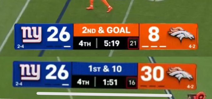 Monday at 02:30 AM2 days The Broncos entered the 4th Quarter with 0 points. I guess we can't talk as the Broncos came back on us as well but it wasn't this bad.