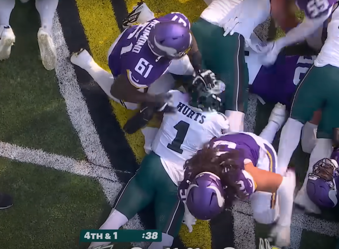 Monday at 05:31 PM2 days 12 minutes ago, NOTW said:#61 pushing Hurts helmet as he got up.I noticed that in real time. It really is crazy how little protection he gets compared to most QBs. I can't remember the last time he got a RTP call - and when he does get a flag thrown it almost always gets picked up. Then you got Dak last night dipping his head after the dude wrapped around his SHOULDER, helmet comes off and they throw the flag.