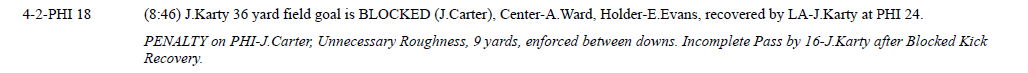 Monday at 03:41 PM1 day Just now, Connecticut Eagle said:Carter's spit was the disqualification.I meant the one last week against the Rams after the first blocked FG