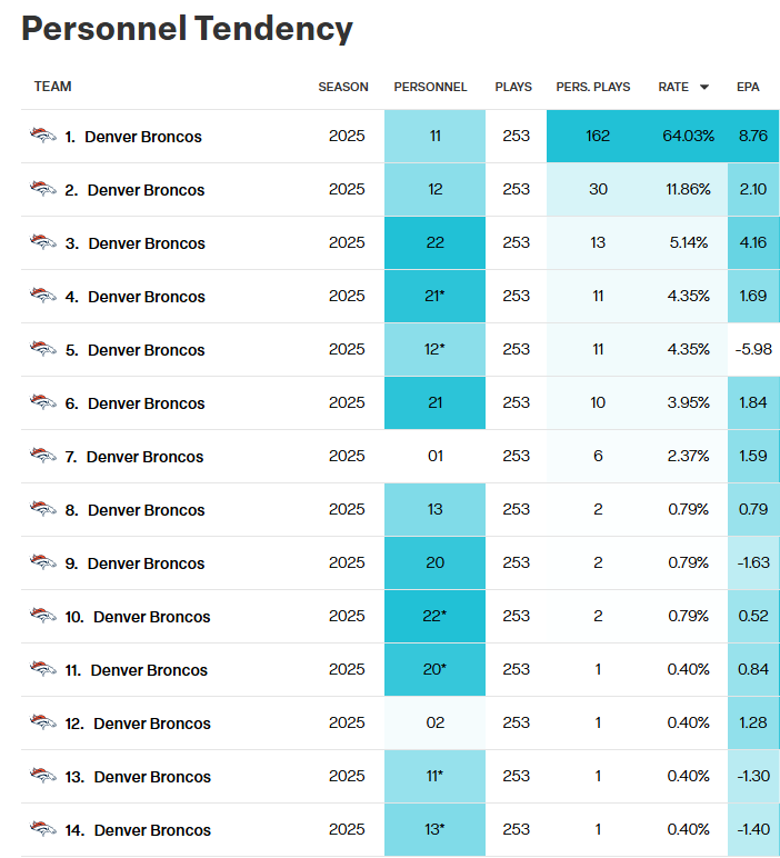 12 hours ago12 hr 8 minutes ago, bpac55 said:The Broncos have the advantage on both lines this week. I posted during the MNF game that the Eagles should walk the Broncos, but if the lines don't come to play, it could be a long Sunday.While DEN is mostly an 11 personnel team like the rest of the league, Peyton makes the defense do some homework with a bunch of 2RB looks and has a knack for scheming guys open. For context we run 11 (61%)-12 (28%)-13 (10%) with like 3 snaps of 21 personnel.