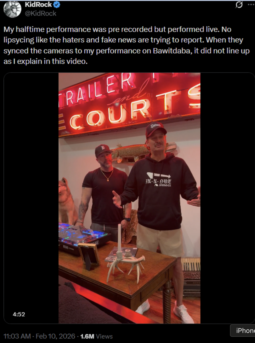 February 10Feb 10 On 2/9/2026 at 10:54 AM, VanHammersly said:Here's the only reason Mike cares about the halftime show.BTW, Trump's just flat wrong about the kickoff rule. It's infinitely better than it was. Teams were kicking it into the end zone almost every single time. I have no idea why he'd want to go back to that. I mean, I guess I know why, his brain is oatmeal, but there's no real argument for changing it back.
