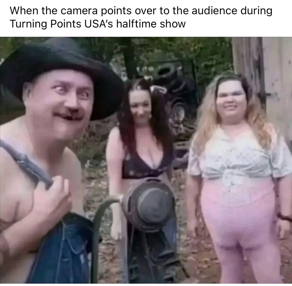February 6Feb 6 14 minutes ago, lynched1 said:He not the Puerto Rican guy in the dress right?Now I know you're playing dumb because the tweet you replied to even said "Kid Rock is set to headline Turning Point USA's Super Bowl halftime show this weekend."