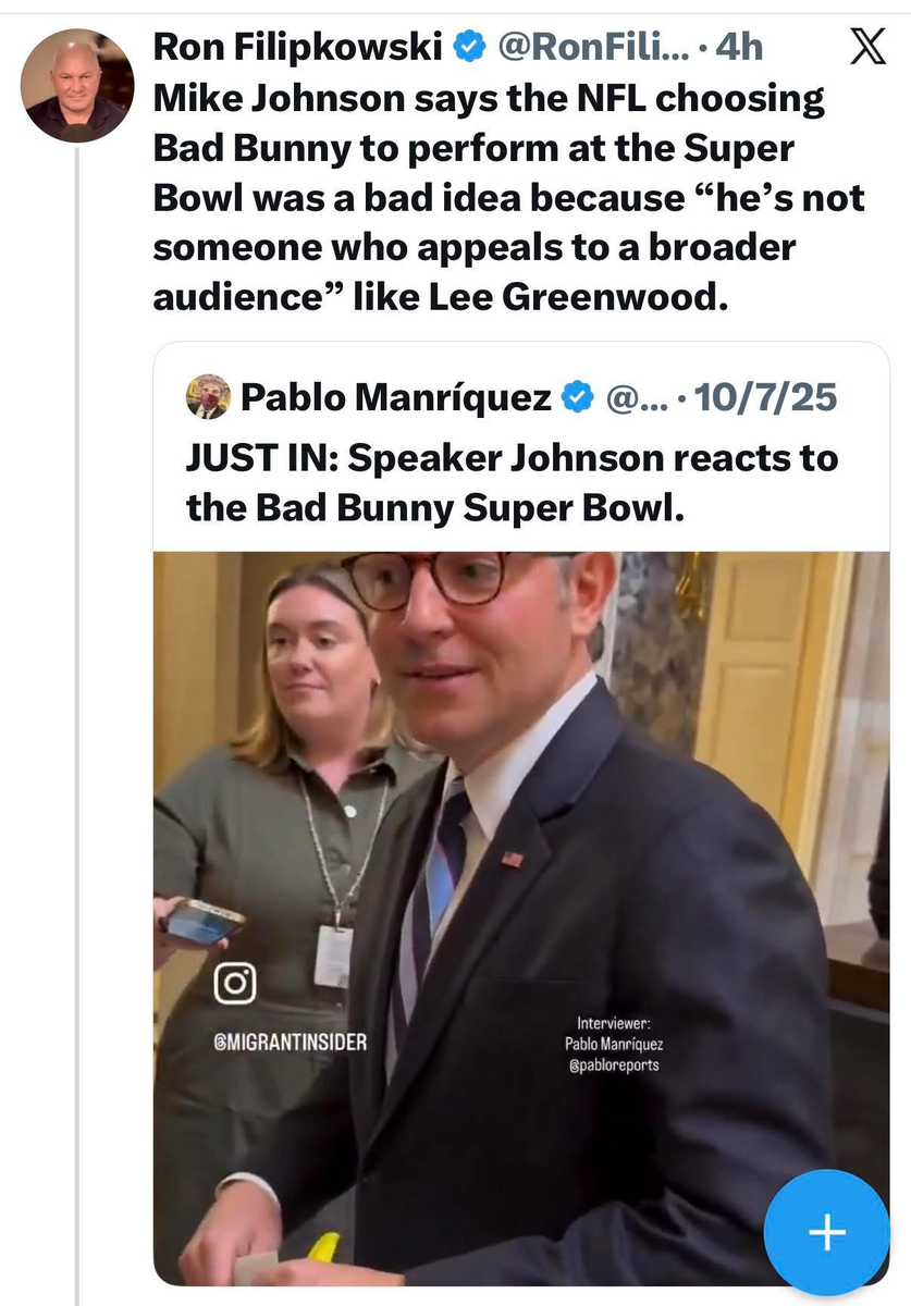 February 6Feb 6 2 hours ago, Mike030270 said:He's in the maga halftime show..Please don't confuse him with facts