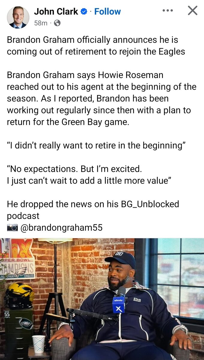 Yesterday at 11:40 AM1 day 30 minutes ago, EazyEaglez said:But we know how Sirianni basically would politic for older guys to hang around like he did for Kelce. I think they thought those guys were ready and they’re just not. Remember that veteran presence was himself was just recently added just before the season.Yeah but if Smith hadn't retired, BG would've remained retired, BG is just an easy plug in high character guy to round out the bottom of the rotation, rather than kicking tyres on other free agents and hoping they fit chemistry wise.