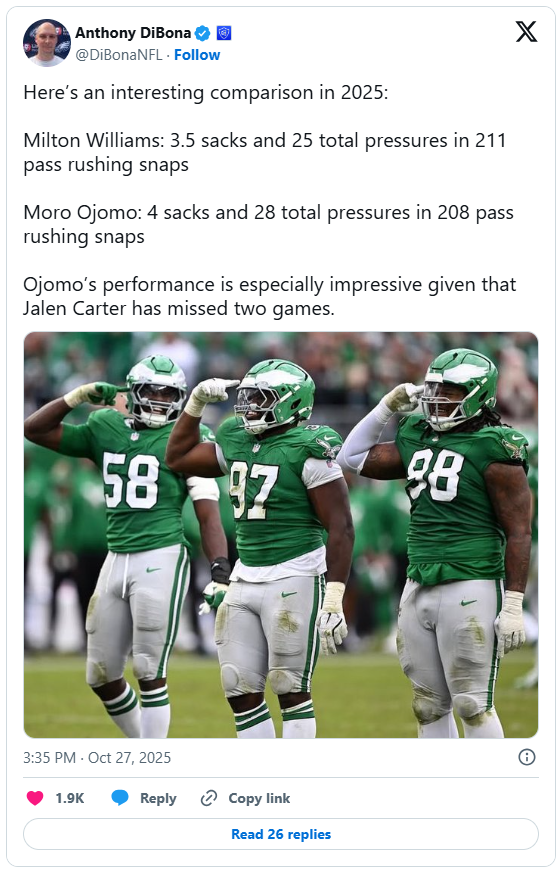 Posted Thursday at 12:03 PM2 days Howie Finds a NickelPosted October 29th, 2025Howie Roseman didn’t wait for the trade deadline to make a move. He found someone he liked on Wednesday and made the deal, adding an experienced player to the Eagles secondary.Carter has played in 65 games over his career, with 25 starts. That’s misleading because he is a nickelback. He played starter level snaps, but wasn’t always on the field at the beginning of games. His 5-10, 184 size certainly is more of a traditional fit at nickel than outside corner.So what exactly are the Eagles getting in Carter?The question now is how Carter fits in with the Eagles defense. They already have one of the top nickelbacks in the league, Cooper DeJean. Trading for someone with Carter’s talent and experience could mean a couple of different things. It is possible that Vic Fangio wants Carter in the slot and will move DeJean to outside corner.The other possibility is that Carter was made as a depth move. He gives the Eagles a backup at nickel in case anything happens to DeJean. Parry Nickerson had been the backup nickel. Carter is an upgrade. Vic Fangio likes rookie Mac McWilliams, but he’s just not ready to play key snaps for a title contender.There might not be a definitive plan for Carter. Fangio can have him as the backup initially and get a better feel for Carter and how to use him as he practices with the team. No matter how you slice it, this was a good move. Metchie wasn’t needed at WR. The Eagles have Darius Cooper and Xavier Gipson outside of the big three. They are fine at WR.DB was an area of need. You would love to trade for a good outside corner, but I’m not sure how many of those guys are available right now. Carter didn’t cost a key player or pick and makes the Eagles deeper and more versatile. His presence gives Fangio the option to keep DeJean in the slot or move him outside. The Eagles could try Carter outside, but he’s barely played there in his NFL career. Carter is meant for the slot.Here is a look at Carter from the Jets perspective.Carter wanted to come to Philly. He re-worked his contract so the deal would get done. He’s never had a chance to experience the postseason, let alone the Super Bowl. Now Carter has a great chance to be playing in January and possibly February. You know he’s excited.A couple of misc nuggets.Joe Douglas was the GM for the Jets when Carter was drafted. Douglas is now back working for the Eagles.Carter will have almost 2 weeks to get ready for the Eagles next game (a week from Monday)*****Does this mean Howie is done? I don’t think so. The Eagles didn’t use any key resources in making this deal. Howie can continue talking to other teams to see what is available. I don’t think he’s going to pay a premium price because I’m not sure there would be a deal that makes sense. I wouldn’t trade a first round pick for DE Trey Hendrickson. He will turn 31 in a month, has 4 sacks this year and is battling back/hip injuries.Any deal will have to make sense for the Eagles now and into the future. The Eagles are good enough to win as is. Howie isn’t desperate for help. That said, there are areas that could be upgraded. The price has to be right. The fit has to be right.*****Moro Ojomo has sacks in consecutive games and is playing well this season.Keep making plays.https://igglesblitz.com/2025/10/howie-finds-a-nickel/