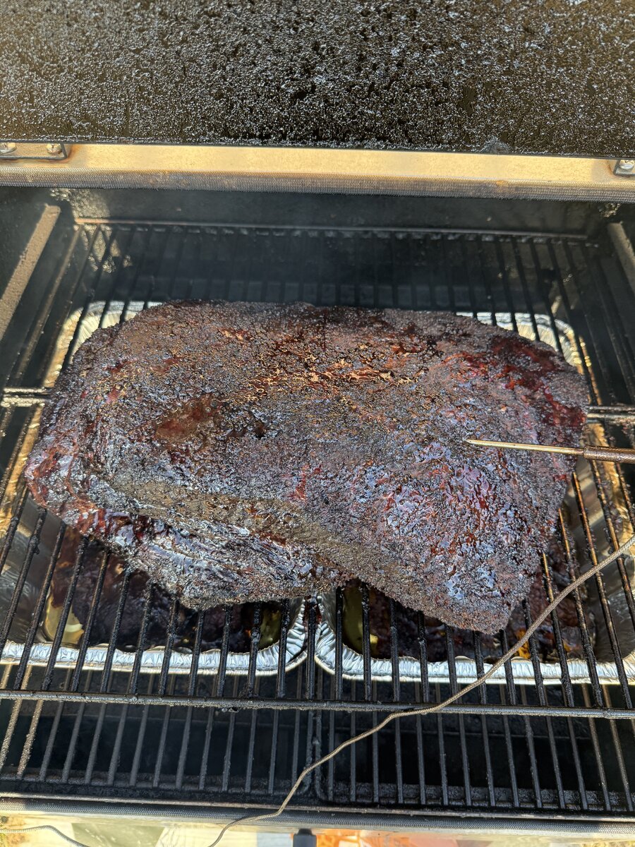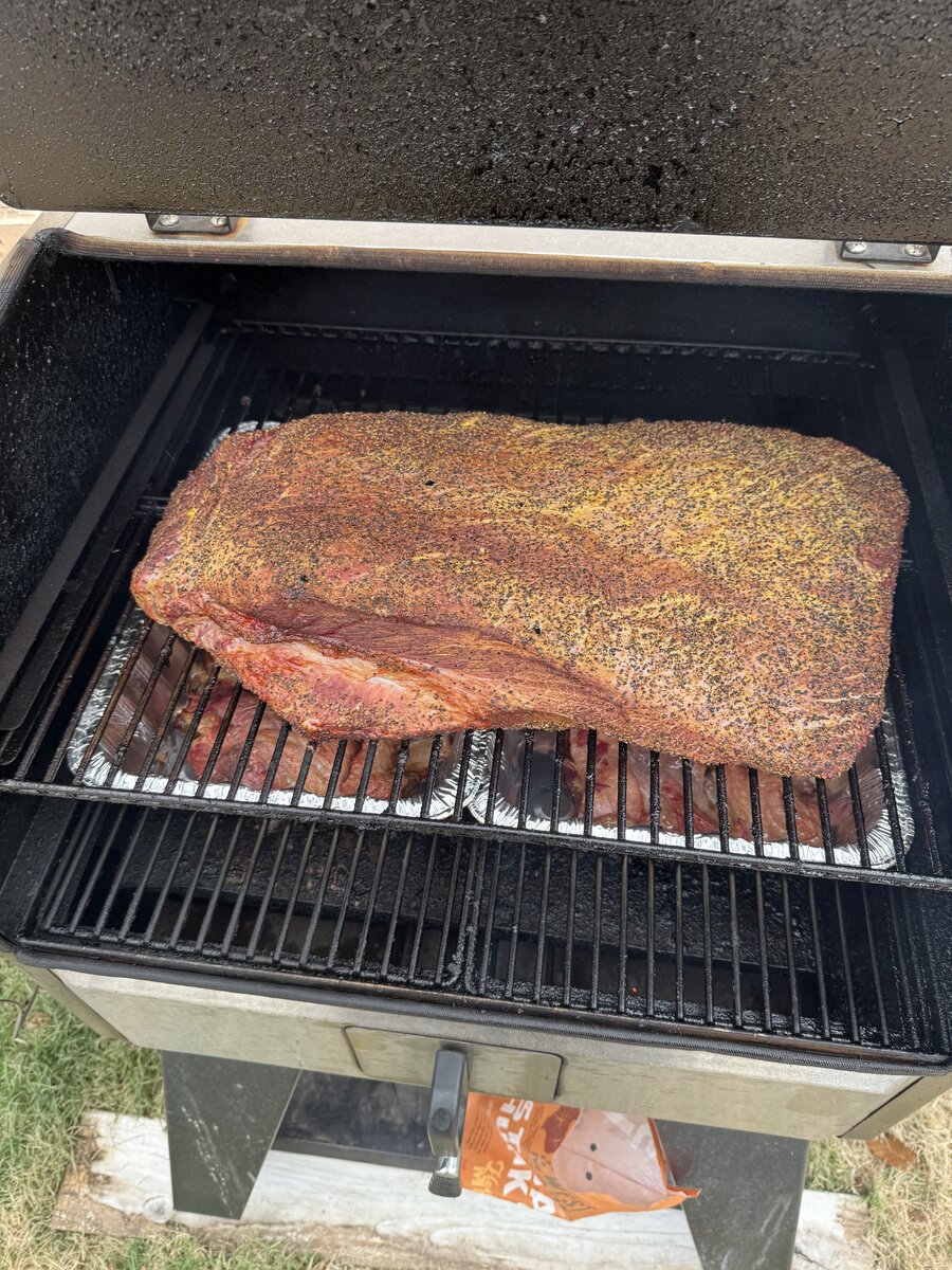 December 24, 2025Dec 24 1 hour ago, Joe Ball said:8:30am3:30pm19lb brisket trimmed down to 15lb…I’ll wrap it in about an hour, maybe two, in butcher paper. Hoping it’s done by midnight but it’ll be close. Hold it overnight @150. It’s 78 here today so the cook is moving along nicely, crazy warm for Christmas.Tomorrow morning after the grandson opens his gifts I’ll smoke the boneless skinless turkey breast, a pork belly, and some jalapeño & cheddar sausage…Christmas dinner, with enough the kids can take some home.I’ve never tried scrapple, gonna have to check it out since you all have introduced me to it now. Hash i’ve had, and it’s ok every once in a while, usually a little salty for me.If corned beef hash is too salty for you then scrapple will make your innards shrivel. Your brisket looks delicious.