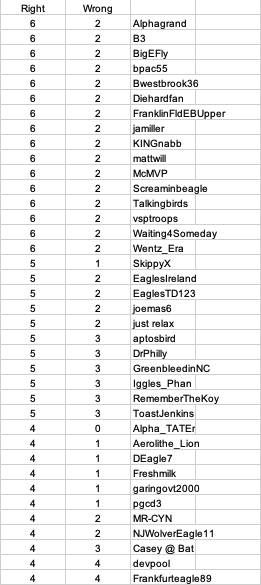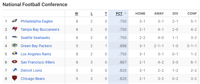Monday at 05:30 AM2 days The Bye Week has been very good to the Eagles. We now have sole possession of the 1st seed, thanks to Packers and Lions losing to NFC foes. The top of the NFC standings look like this.So it is on to our Monday Night game with the Packers. It will be the 50th game between the two teams with the Packers holding the Regular Season series edge 28-17. They have also met 4 times in the Postseason, with the Eagles holding a 3-1 edge in those contests.As we do each week, we are gathering Game Score predictions. As always, please tag your prediction post with @mattwill that way I will be sure to see/record it. Score predictions can also have an optional "Bonus Pick" tiebreaker prediction. I will be taking predictions right up until Kickoff. If someone posts a prediction without a tag, please reply to it including the @mattwill tag.For those of you who missed the Week Eight results, they can be seen by clicking the link below.
