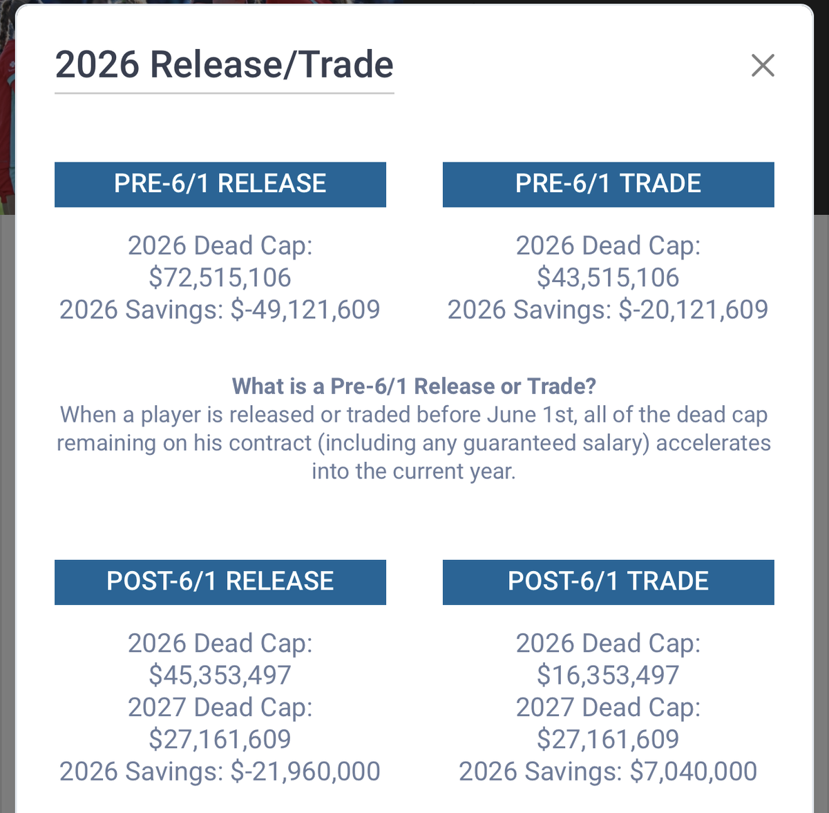 November 17Nov 17 2 minutes ago, e-a-g-l-e-s eagles! said:20m cap hit to trade him at the draft. Thats doable. Then a monster cap windfall in 2027