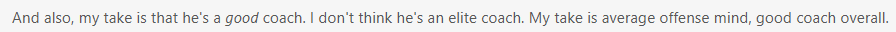 12 hours ago12 hr 1 minute ago, e-a-g-l-e-s eagles! said:True.That said, I would still give loeffler the play calling duties. The reason why is because with Kevyn Pattulo it’s been 11 games and I haven’t seen any real improvement. It would be one thing if he was real bad at the beginning of the year then you saw midseason until now he’s improving week to week. But that’s not happening. It’s largely the same issues week to week outside of a giants game.I do not think it is going to save them. I think they’re ineptitude goes back to sirianni‘s offense is just not that complicated, he wants to be more conservative when they get ahead and they still won’t utilize their personnel correctly (hence using Calcaterra the way they do). However, I also don’t think this is gonna be a Matt Patricia type decline if they did it. It probably would be status quo over complete decline. IMO, Desai was given a defense that lacked talent and i don’t believe defensive players remotely liked Patricia.I’m not saying don’t make a change. I just think when you take into consideration this circumstance, this team and this QB at this time of the year, it basically it what it is. You risk slight improvement while possibly tanking your already struggling offense. Basically, make the change if you want. But for this team its not going to be an "easy” button to push.
