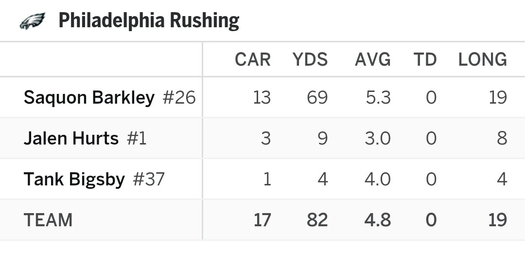 Yesterday at 02:59 AM1 day 2 minutes ago, Mike030270 said:Hurts is going to play so vanilla in the 2nd half for fear of turning it over againAs he should. The defense should dominate the rest of the game and the Eagles are actually running the ball tonight