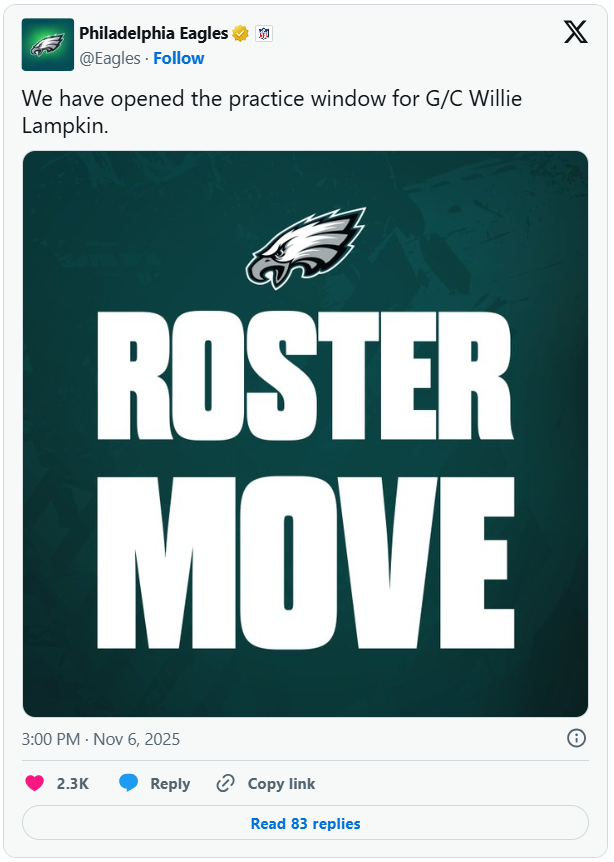 Posted November 10Nov 10 Looking AheadPosted November 6th, 2025The Eagles are coming off their bye week and heading into the second half of the season. The team is off to a 6-2 start. Evaluating the Eagles is tough. They haven’t played good football on a consistent basis, but they played a tough schedule and had to deal with their share of injuries. Let’s take a look ahead.***While nothing is a lock, the Eagles have a great chance to repeat as NFC East champs. Dallas is in second place and already has three more losses than the Eagles. Winning the division wuldn’t be a huge deal except that there hasn’t been a repeat champ in the division since the Eagles in 2004. I think we’re all tired of hearing that stat and are ready for the Eagles to repeat.***Last year the Eagles went 16-1 after the bye and dominated a lot of those games. The team doesn’t have as many games to play this time around. Beyond that, I don’t see the same kind of dominant run. The team has had to deal with more injuries and more drama this season. It was encouraging to see them dominate the Giants in the last game, but this is a different team and has a challenging schedule.***One of the things that propelled last season’s team to greatness was Cooper DeJean entering the lineup. He made a huge difference for the defense. There is no DB that will come in and give the team the same kind of boost. I do think that Drew Mukuba could be an impact player if he can build off his performance against the Giants. He covered well in that game. The overall defense covered well, forcing Jaxson Dart to hold the ball. That led to the 5-sack showing by the pass rush.***The new player who could make a difference is edge rusher Jaelan Phillips. Howie Roseman and Nick Sirianni said great things about him. They have high expectations for Phillips. And it sure sounds like he’s excited to be an Eagle."I thought I was excited on Day One, but talk to me now. This is literally the greatest thing that’s happened to me in my whole life, probably,” Phillips said. "It’s just awesome. The guys are awesome. Everybody’s been super welcoming. I love the environment, I love the vibe here. The city of Philly has given me a very warm welcome. I got about 20 times the amount of Instagram likes that I ever got on a post before, from Philly fans, so shout out to them. It’s been great so far, getting out there practicing. I love the weather here, I love the locker room. Everything’s awesome.”Things will stay great as long as he has a bunch of sacks and leads the team to another Super Bowl. Easy stuff.***Most people still have doubts about Jaire Alexander. It has been a while since he was a good CB. That said, I would love for him to prove me wrong.It would be a really cool story if Alexander could have a bounce-back season playing for his hometown team. He is saying all the right things about being healthy, but we need to see that before truly buying in.***The real key to the recent moves was adding depth. Think about the DB injuries from the first half of the season. Jakorian Bennett, Adoree Jackson and Quinyon Mitchell all missed time. You didn’t want Mac McWilliams, DeJean and Parry Nickerson as your starting DBs. Michael Carter is a dual fit at nickel and safety. Alexander is a veteran. This isn’t a great group, but Vic Fangio at least has options.Adding Phillips up front makes the pass rush deeper, especially with BG and Nolan Smith on the way back. Again, Fangio will have options on who he wants to play and how he wants to use them.***Speaking of depth…Interesting. Cam Jurgens didn’t practice on Thursday. Brett Toth could be in for another start in the middle. Rookie Drew Kendall is the other backup center. Lampkin played G and C for the Rams this summer. If the Eagles are having him practice, they obviously have serious interest in having him on the active roster. I don’t know how everything would shake out, but this move fascinates me.***Some tragic news from the football world.Kneeland apparently had some mental health issues and took his own life. Just heartbreaking news. This was a 24-year old kid who should have been on top of the world after scoring a TD on Monday night. Instead he’s gone just a few days later.Life can be tough even when things seem good to those on the outside. Talk to someone. There is help out there. People will listen. Things can change. Things can get better. Just don’t do what Kneeland did. That can’t be fixed. That can’t be undone.Don’t ever be afraid to ask for help.https://igglesblitz.com/2025/11/looking-ahead-3/
