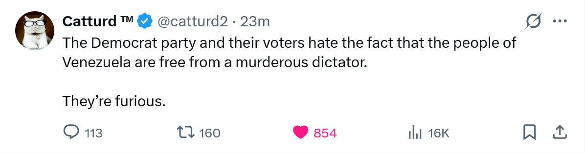 January 3Jan 3 2 minutes ago, DrPhilly said:No chance. Rubio just put Cuba on notice and for sure there will be more warfare accelerating in other regions of the world even if we focus on Venezuela only.Right, pressure. If you think what just happened in Venezuela was "war” then I don’t know what to tell you. Cuba will fall far faster, Columbia might be a tougher one but Trump seems to know how to turn the most painful screws. Lastly, China having more influence on who is leading countries in our hemisphere is obviously dangerous and unsustainable.