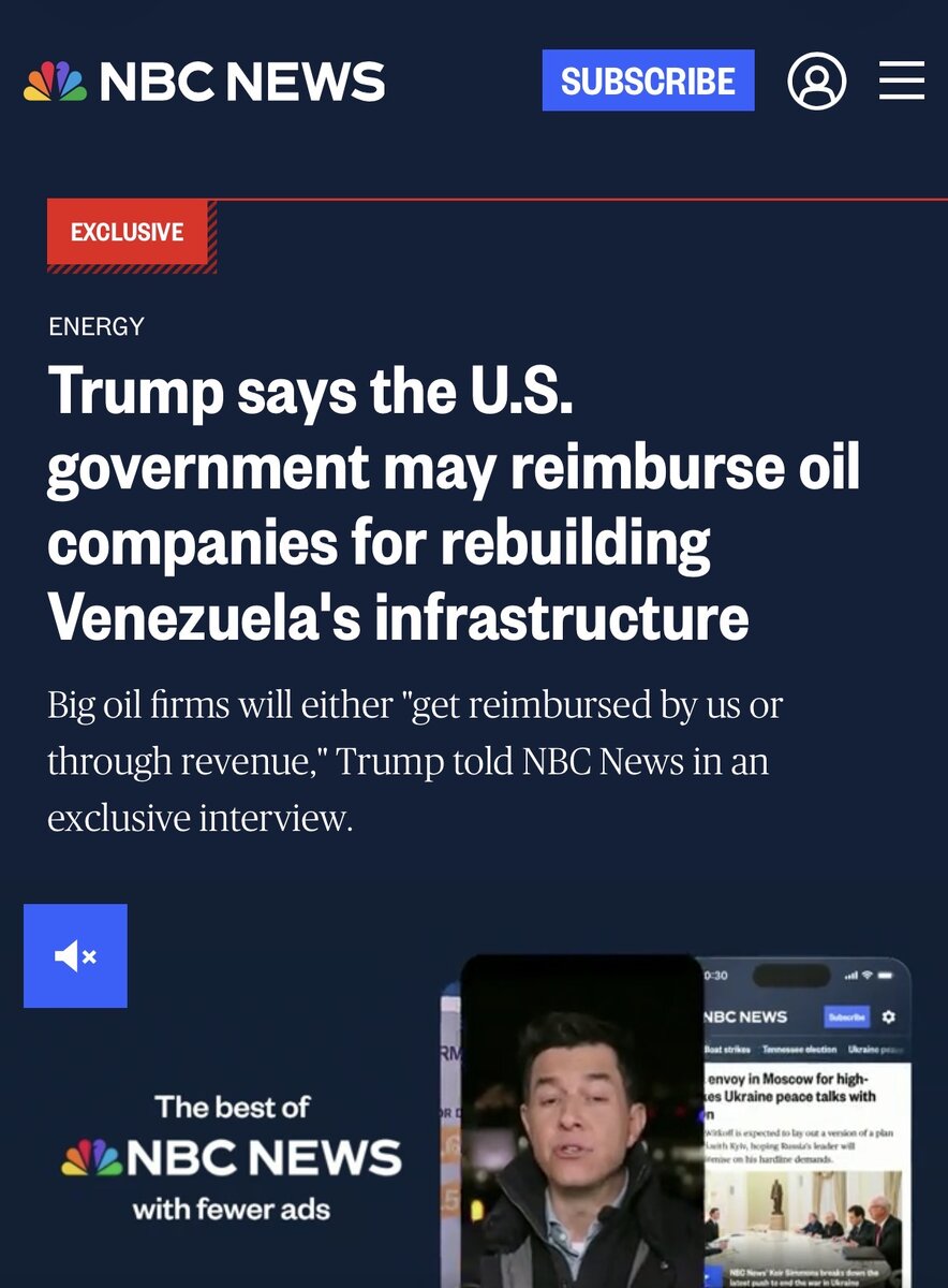 January 6Jan 6 This is going to go down as the ultimate and definitive case of "Even when Trump gets it right, he gets it wrong". Power dynamics in Venezuela will not change and will probably get uglier. Drug cartels will find new routes and oil companies will give Trump a promise and a photo op but won't actually get Trump the oil he wants. Maduro's trial will be another Trump led legal sham.it is insane that MAGA and its fans will fall for this level of con job, but of course they will again. Trumpers won't even bother visiting this thread 6 months from now.