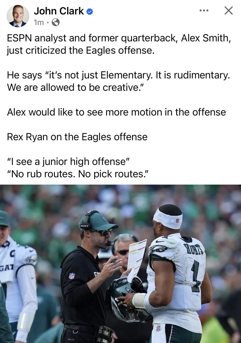 November 23, 2025Nov 23 Author 38 minutes ago, time2rock said:Many outsiders saying the exact same. There is zero creativity to this offense … and it is insane that people want to point the finger at Jalen as the primary culprit. You people are nuts.To be fair, we haven't ran much motion in the past. But we have gone away with what has worked in the past. Gotta get the WRs the ball in stride and let them get yac. That is mostly scheme and a few highlighted plays Hurts simply didn't see or didn't stay in the pocket either due to pressure or he thought running was the best choice.