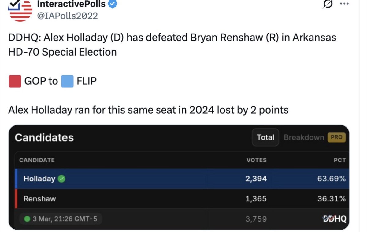 March 3Mar 3 22 hours ago, DEagle7 said:Partially Maine is weird. Partially people being sick of the heads of the Democratic party. Dude seemed like he got a significant funding bump after Schumer didn't support him. You'd think this is such an extreme example of the consequences of that that it would be a wake up call, but I doubt it.IDK if I'd define that as benign as being "weird".