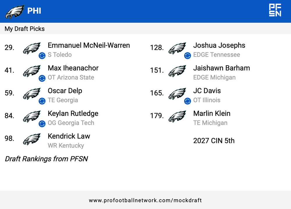 Posted January 13Jan 13 Offense:Get a seasoned play caller.Elevate the complexity of the passing game and start installing it in the Spring.Fortify the depth of the offensive line. This includes the heir at RT.Get tight ends who can block.Defense:Upgrade CB2 and add depth to the secondary.Contracts:Sign Phillips and maybe bring back one of Ojulari/Okoronkwo/Uche.Let Goedert, Blankenship, and Dean walk.I haven't figured out what to do about extending Carter, Davis, Ojomo, and Nolan.Pending free agents: Blankenship, Calcaterra, Castro-Fields, Dean, Dillon, Dotson, Epps, Goedert, Graham, Granson, Howell, Hughlett, Jackson, Fred Johnson, Mann, Ojulari, Okoronkwo, Phillips, Pryor, UcheExtendable contracts: Bigsby, Sydney Brown, Carter, Davis, McKee, Ojomo, Ringo, Nolan Smith, Steen