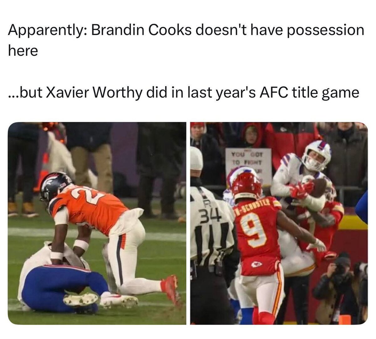 January 18Jan 18 7 minutes ago, e-a-g-l-e-s eagles! said:Yup. It’s why I hate fans complaining about it and McDermott crying about it. There was no conclusive evidence that they were going to be able to overturn it either way. Should they’ve looked at the replay? Yeah, but I don’t think it makes any difference on the outcome of what the call would’ve been. Whatever the officials called it was what it was going to be after review.But then again, I feel like this is a deflection for Sean McDermott for the fact that his team did things that they normally do in playoff losses. And he’s trying to deflect and shift blame from things he could control to things he can’tHonestly this whole sequence highlights how badly the rules on a catch are written. Which takes precedence? What is the sequence? It’s pretty clear that both players had hands on the ball when Cooks knee goes down. Now…do we go with split possession goes to the O or pivot to surviving the ground?