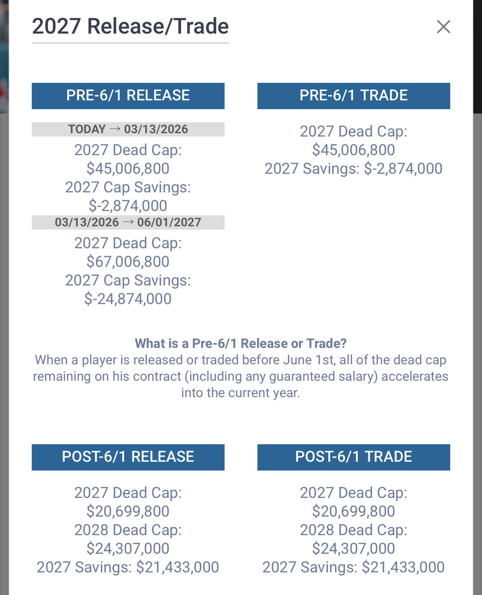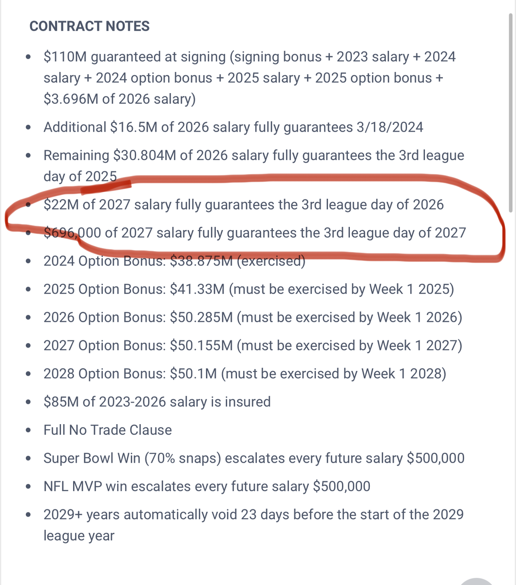 January 21Jan 21 11 minutes ago, wussbasket said:Hurts has no guarantees on his contract after 2026. So they would need to extend him this offseason when his stock is lower, or ride it out and see if/how he can improve.That’s not entirely true. If Jalen hurts is on the roster the third day of the new league year in 2026, $22 million is guaranteed in 2027.