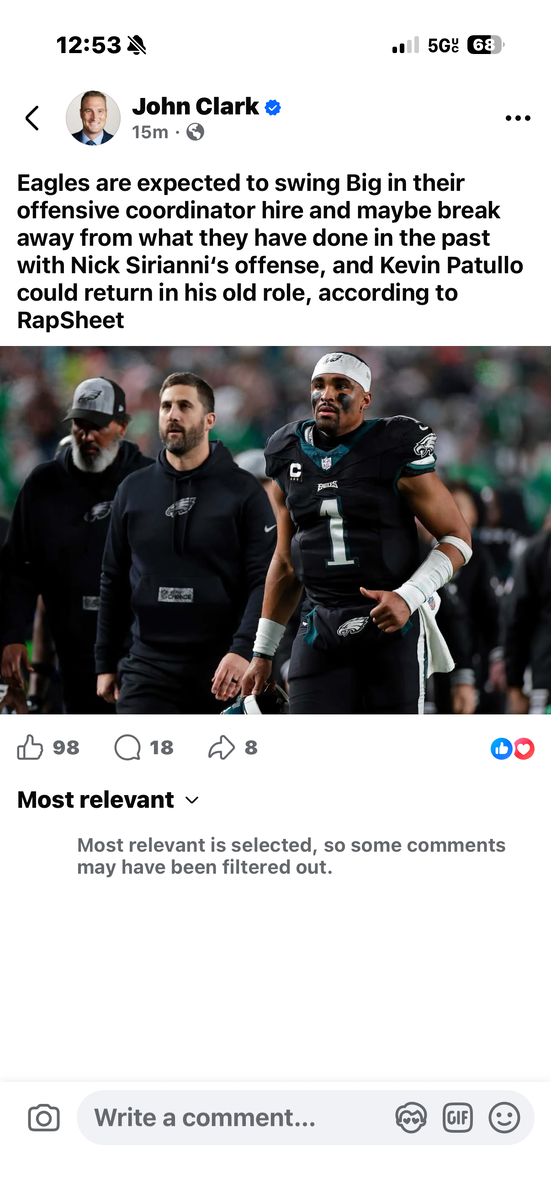 Wednesday at 08:47 PM2 days Apropos of nothing, I tend to disagree with EJ Smith about everything. I think he has some pretty bad takes.His top candidate for Eagles OC is Kingsbury. I don't think he'd be a disaster or even a bad hire, he'd be fine, but how is that choice #1.