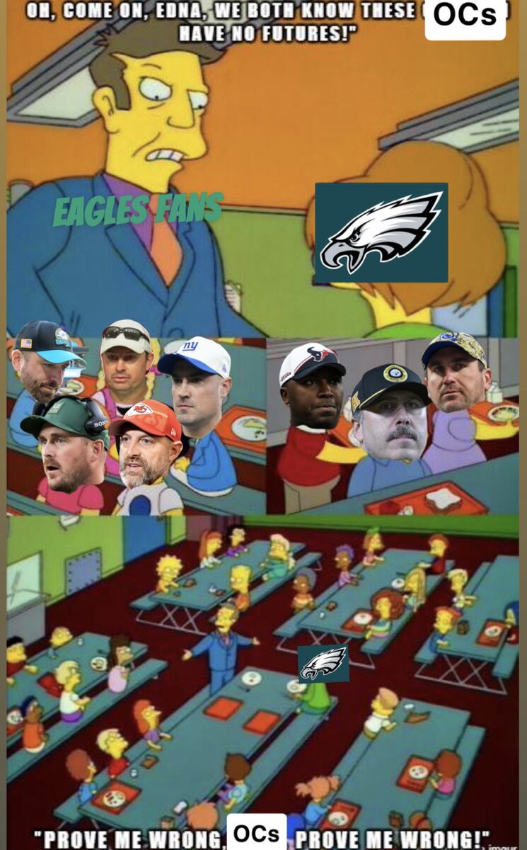 Tuesday at 07:14 PM2 days 15 minutes ago, HazletonEagle said:Just to be clear, we have missed out on McDaniel because he only likes warm weather, and possibly Daboll because he promised his friend he would go be his OC.There are no others who have been hired that a. the eagles clearly liked, and b. fans even wanted.Yet, people are upset.Why do you hate Philly fans so much.