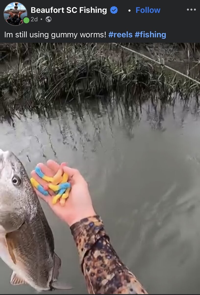 February 13Feb 13 2 minutes ago, Joe Ball said:Speaking of fishing material…I saw a vid yesterday of a guy in Beaufort South Carolina fishing with gummy worms, you know, like the Trolli candy gummy worms.Crazy.Unsurprising