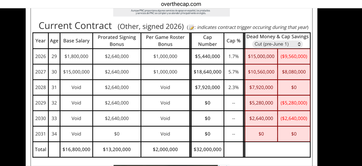 Friday at 12:39 PM3 days 11 hours ago, LeanMeanGM said:Something’s off. You can only spread up to 5 years so I’m not sure what the 6 void years means unless they have a dummy year to post June 1st him which isn’t technically a void year and then have 5 void years tacked on top of that.it’s a two-year deal worth $32 million. The new numbers mean Gary took a $6 million pay cut in exchange of $16 million guaranteed.The most important part of his reworked deal, however, is the addition of a $13.2 million signing bonus and four void years to spread it out. This helps the Cowboys drop Gary’s previous $19.5 million cap hit all the way down to $5.4 million.That’s $14.1 million in cap savings for 2026.