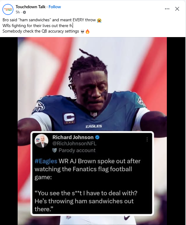 March 24Mar 24 1 minute ago, pgcd3 said:Other than that he's pretty goodI am completely baffled that an Eagles fan said "I like Sydney Brown." Seriously, what could there possibly be to like about him. He is just a flat out horrible NFL football player.