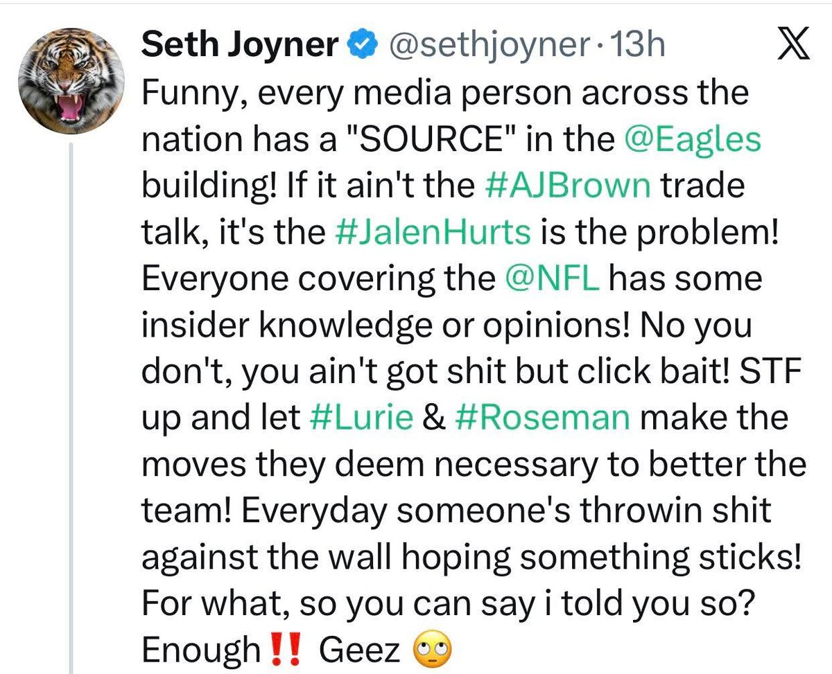 Thursday at 01:54 PM1 day Not much new stuff in here but one noteworthy point. "The Eagles have no plans to extend Hurts this offseason, NFL sources said"