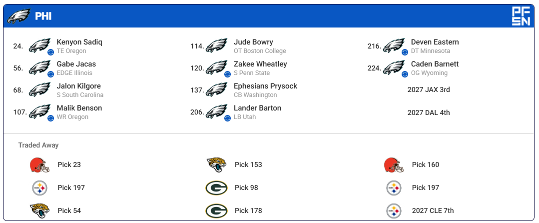 Thursday at 02:26 PM1 day 15 minutes ago, pallidrone said:Because why not?I should mention that I suck at this whole mock draft thing. However, after watching the vid that @HazletonEagle posted about Malik Benson, whom I now want, I decided to give it a shot.Barnett is a nice sleeper with your last pick. I dont know Barton or Eastern. Looks nice. Benson is much more preferrable than someone like Antonio Williams who the eagles are showing interest in.