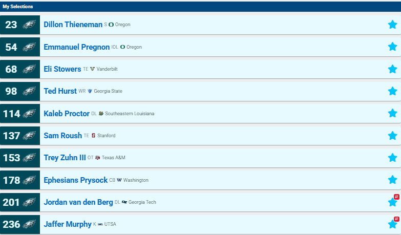 21 hours ago21 hr If Freeling is sitting there in the 13-15 range, I could see us packaging a couple high picks to move up for him.