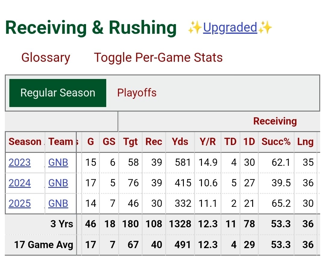 Yesterday at 01:51 AM1 day 3 hours ago, ManuManu said:LaFleur got killed in the players survey, with players noting dissatisfaction with their roles. I’m confident that came from the WRs. Fans were even frustrated with how he rotated players, barely playing Golden. With Doubs and Wicks gone, they’ve streamlined a five and sometimes six man rotation to Golden and Watson on the outside with Reed in the slot. Maybe Williams and a draft pick soak up some snaps, but this is a way for them to get their best players on the field while also making them happier.Yeah the GB fans I know really hated the whole "big rotation of 5-6 mediocre WRs" thing. That being said Smith is better than anyone they have so that won't really be the case here regardless of how many Wicks tier guys they bring in at least.