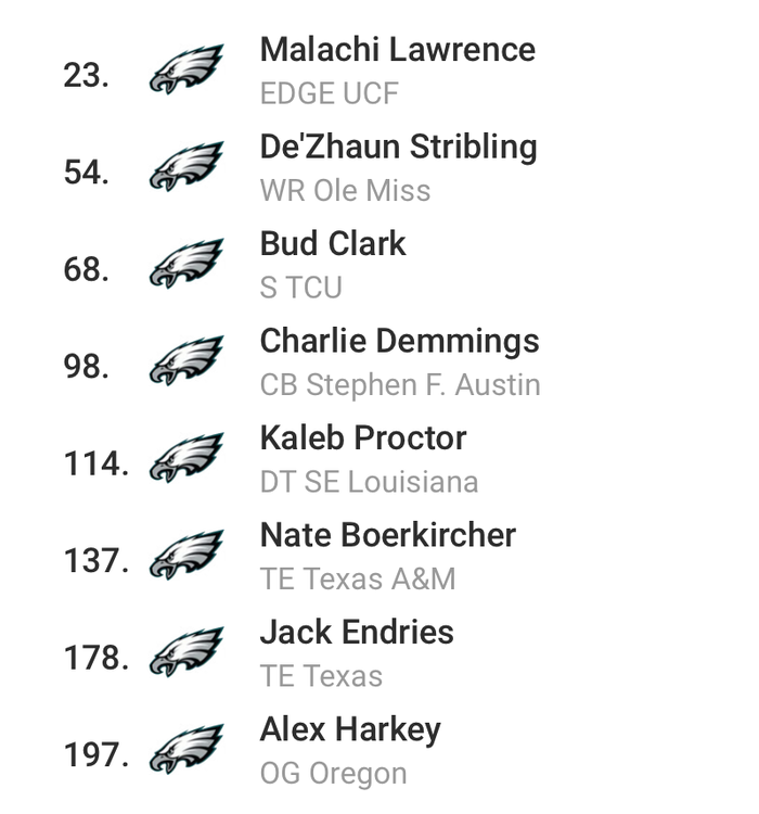 Tuesday at 01:16 PM2 days 13 hours ago, Iggles25 said:My betting money is on a trade back to the early 30s.Howie knows where the value is in this draft. It is not at 23.I feel like this only happens if a team takes the plunge on Simpson -or- is much hotter on these OL prospects than we are. SD only has 4 picks so we might get sniped anyway.