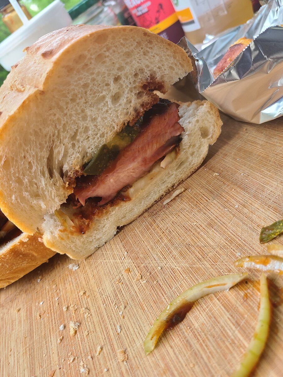 May 30, 20214 yr Alright, so everything got a little hectic at the end, and I totally failed at getting pics (had been drinking for awhile by that point, lol) but the pork was amazing. I didn't bother taking it out and finishing in the oven. I just wanted to keep things simple and smoke untIl done. After 11 hours, it was still temping at only about 165 (I'm sure the vent fiasco probably had something to do with this, so I'll make sure that's secured next time). I was targeting 195-200, but was getting worried about drying it out after that much time and and it only being a 8-pounder, so I pulled it off and gave it a 30 minute rest. It was falling off the bone and sliced up easily, maybe not "pulling" quite as thinly as you'd prefer if you're really picky, but still very good and made great sandwiches and paired perfectly with Malbec. The only finished pic I got was this one that my dad's blurry arm is obstructing. I'll post some more of the sliced meat when I pack up the leftovers here soon. The family loved it and was still complimenting it today. All in all, a pretty successful first smoke. Thanks again to all who advised!