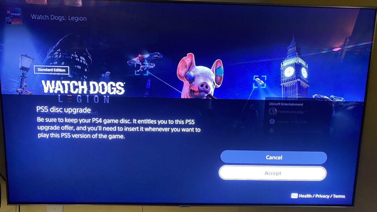 November 16, 20205 yr 3 minutes ago, we_gotta_believe said: Curious how this works also. I already pre-ordered the ps5 version for $60 so if it's literally the same game after the free upgrade, I might cancel it and just opt for this version instead. I will plop in shortly. Maybe now. Curious myself to learn how the free upgrade works but not sure if legions for ps5/SeriesBleh is purchasable though digital store even yet if they don’t have disc version out in stores yet?