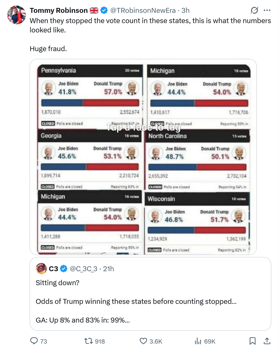 January 29Jan 29 The FBI will assist a convicted felon in changing the outcome of the election. Soon Trump will announce he found more than 11,780 votes that were fraudulent and claim victory. He will then use this to legitimize his attempt to stay in power for life. NO KINGS.