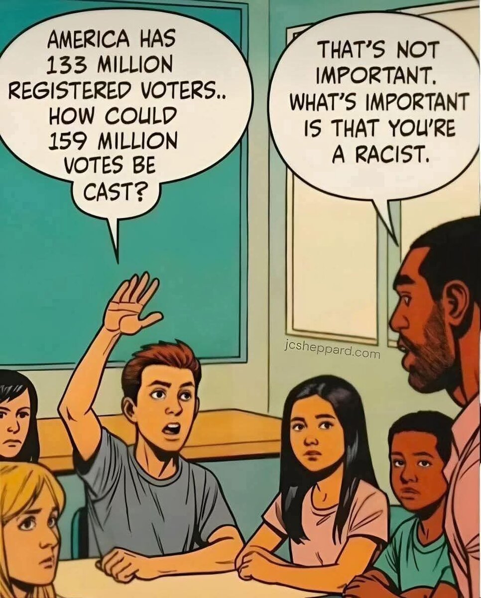 March 13Mar 13 17 hours ago, Gannan said:Good lawd the stupid it burns. There were 168 million registered voters in the US in 2020,StatistaNumber of registered voters U.S. 2024| StatistaIn 2024, there were 173.85 million people registered to vote in the United States.and 155 million votes were cast. There were 242 million eligible voters in 2020. So yeah a lot people still didn't vote.I bet in his drunken stupor he wondered why they didn't submit that cartoon as evidence in one of their many court hearings. There were 174 million registered voters 2 years ago. When the turnout is low republicans win. When the turnout is high the democrats win. This isn't complicated. It's precisely why the republican party actively tries to prevent people from voting. They've admitted it many times.yeah, but 40million that voted for biden were illegals that he let over through our open borders with 2500lbs of fentanyl each in their backpacks!!!!!!!!