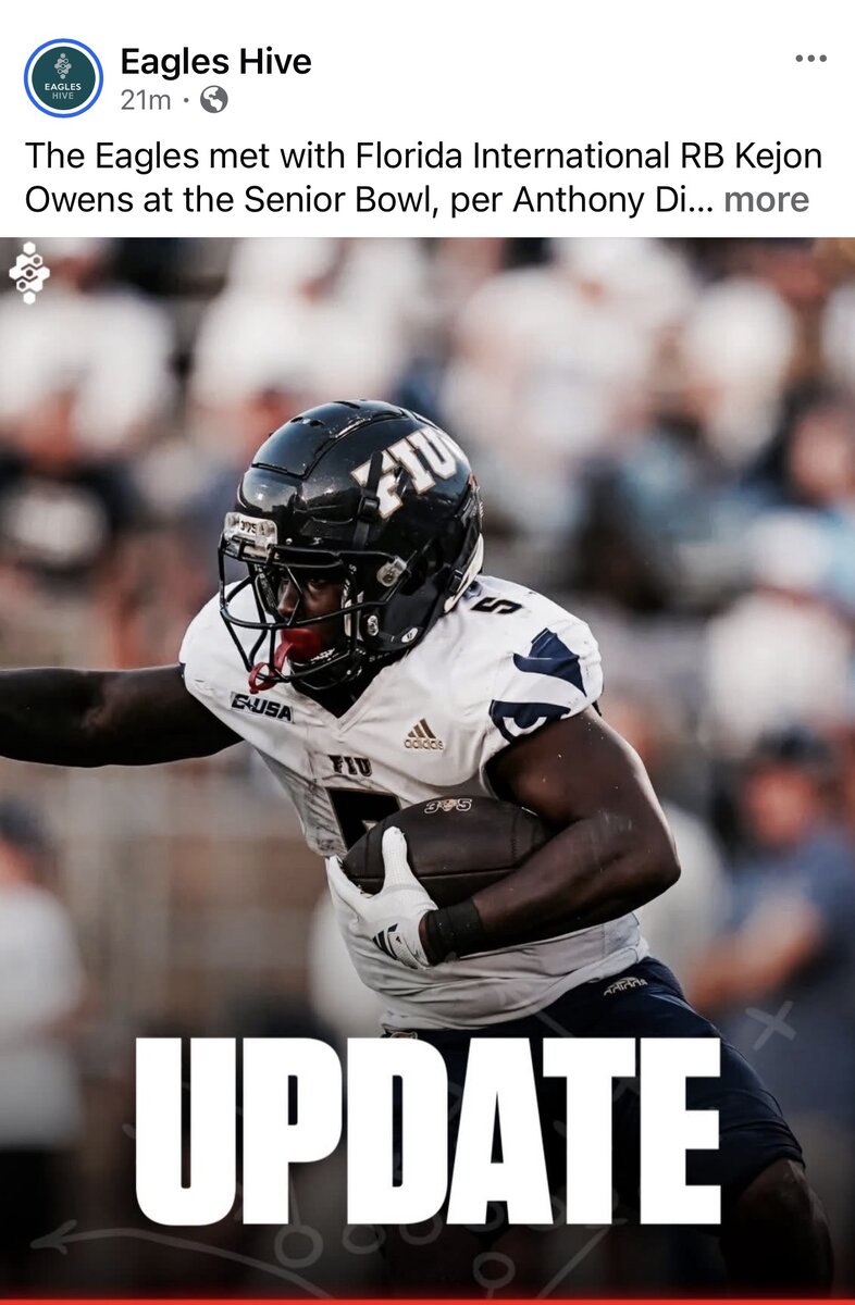 Posted February 4Feb 4 Thought I'd get a thread started to track the players the Eagles meet with leading up to the draft. I'll update this post as more are announced.Fred Davis II (CB - Northwestern) - met with him at Senior Bowl (also met with him twice at the Hula Bowl)Kejon Owens (RB - Florida International) - met with him at Senior Bowl.